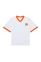 T-shirt with printed logo made of 100% cotton. Features a V-neck design and contrasting trims on the collar and sleeves.