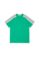 Short-sleeved crew-neck T-shirt in jersey with colorblock details and contrasting piping. Institutional logo on the front on the heart side. Made of 100% cotton. A sports-inspired garment suitable for various occasions.