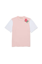 100% cotton T-shirt with an embroidered rose and logo on the chest.