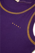 Sleeveless jersey T-shirt. Institutional logo on the front on the heart side. Overlock seams in color contrast stitching. Made of 100% cotton.
