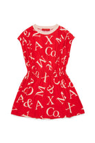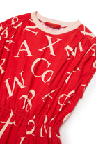 Short dress with all-over logo and gathered waist. A 100% cotton garment with a dynamic, fresh silhouette.