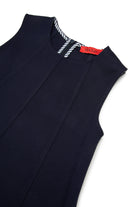 Short dress with logo. Sleeveless, flared design, enhanced by contrasting striped interior details.