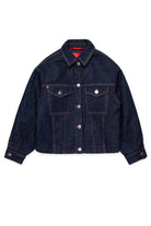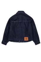 Dark blue denim jacket with contrast stitching. A timeless classic revisited with a contemporary twist, perfect to accompany cooler days in style.