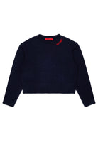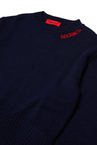 Long-sleeve boxy pullover in wool-blend knit. Contrasting color embroidered logo on the neck and side slit give the garment a modern and recognizable look. Perfect for casual everyday looks.