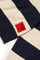 Striped cardigan in 100% cotton with logo applied at the hem. An iconic piece with front closure and contrasting details.
