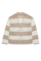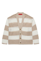 Long-sleeved 100% cotton knit cardigan. Characterised by an all-over print striped print. Front button closure with logo buttons.