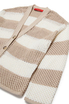 Perforated striped knit cardigan