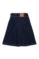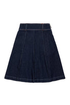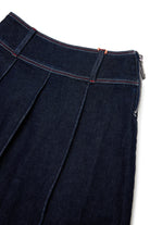 Dark denim midi skirt with maxi pleats that give movement and volume. An easy-to-match garment perfect for casual yet curated looks.