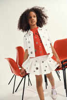Mini skirt with logo and metallic polka dot print. Pleated design with a dynamic look, perfect for completing playful outfits.