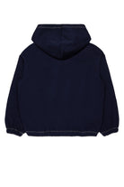 Fully zippered sweatshirt with front logo. The model features a hood and elastic finishes on the cuffs and hem.