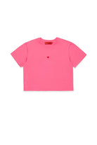 Cropped jersey T-shirt with heart embroidery