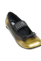 Hand-brushed two-tone leather ballet flats enhanced by Numeric logo on the elastic band and front bow. Also perfect for parties and special occasions.