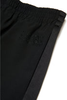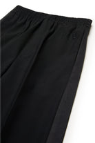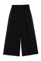 Cool wool pants. Elastic waistband. Satin tuxedo-style side bands. Numeric logo embroidered in color tone on the front. Front welt pockets. Iconic seam at back. Viscose inner lining. A special garment, ideal for parties and ceremonies.