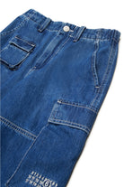 Short cargo pants in light blue denim. Patch pockets along the legs. Numeric logo embroidered in contrasting color on one of the side pockets. Front slash pockets. Iconic seam at back. Made of 100% cotton.