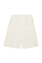 Formal shorts with logo and tone-on-tone fabric side band. A sartorial-inspired piece featuring slant side pockets and a front button closure.