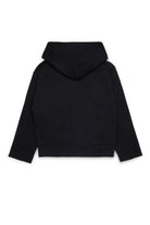 Long-sleeved hooded sweatshirt features raw-cut hems and a heart-side zip pocket. Ideal for a casual and trendy look.