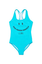One-piece swimsuit with logo and playful graphic print on the front. Distinctive racerback neckline and back opening with iconic rear seam.