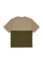 Short-sleeved T-shirt in soft two-tone cotton jersey, featuring a re-cut construction that simulates the assembly of two deconstructed and reassembled garments. A garment that embodies MM6's signature DNA.