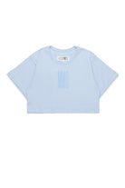 Cropped crew-neck T-shirt in short-sleeved jersey. Institutional logo in color tone on the front. Iconic seam on the back. Made of 100% cotton.