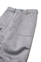 Blue and grey Double Layer Neoprene trousers, with knee-length pleats for a rounded effect, partial elastic waistband and contrasting back pocket.