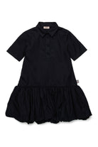 Short dress with logo and wide ruffle. The design features a classic collar and partial button placket, and is made from lightweight cotton poplin.