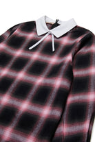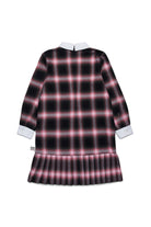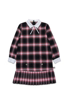 Plaid flannel midi dress with pleated bottom. A garment where the shaded check pattern becomes a symbol of style and identity, embellished with original details such as the removable bow.