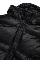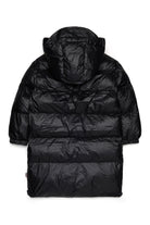Long padded jacket with asymmetrical bottom, featuring a modern and functional design. The tone-on-tone embossed logo N°21 appears on the front at pocket height, adding an elegant and discreet touch.
