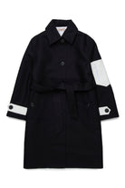 Cotton trench coat with logo on the back, featuring a classic yet modern design.