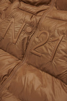 Long padded jacket with asymmetrical bottom, featuring a modern and functional design. The tone-on-tone embossed logo N°21 appears on the front at pocket height, adding an elegant and discreet touch.