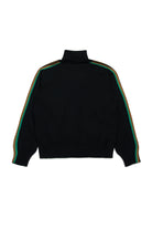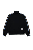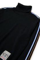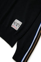 Wool-blend shaved knit mock neck, enhanced by multicolor bands along the sleeves. Label N°21 applied to the bottom adds a distinctive touch, for the perfect balance of comfort and casual style.