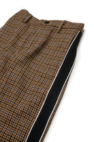 Straight Harris Tweed pants with contrasting color side bands. Ideal for formal looks, they add a touch of character and originality to any outfit. A classic revisited for those seeking elegance and style.