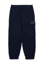 Fleece jogger pants with maxi side pockets, where the contrasting embroidered N°21 logo on the flap becomes the protagonist. A grunge-inspired garment, perfect for casual and everyday looks.