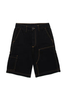 Shorts with a logo patch applied to the back pocket and contrasting stitching. The cargo design adds a modern and functional touch.