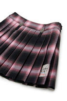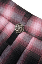 Pleated flannel mini skirt with a plaid pattern. A preppy model with a grunge soul that plays with the contrast between the classicity of the fabric and the freshness of the jeweled buttons.