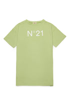 Crew-neck short-sleeved cover-up dress in jersey. N°21 Institutional logo in contrasting color on the front. Side splits. Made of 100% cotton.