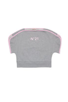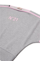 Half-sleeve sweatshirt with boat neckline. Contrasting color piping. N°21 Institutional logo on the front. Elastic on the bottom. Made of 100% cotton.
