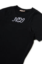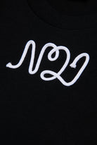 Soft cotton jersey T-shirt with short-sleeved sleeves. A simple yet distinctive garment thanks to the cursive logo N°21 made of contrasting color drawstring on the chest.