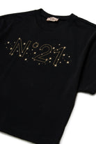 Soft cotton jersey short-sleeved T-shirt with special version N°21 logo with applied hotfixes. Embellished with star-shaped studs that makes each look unique and bright.