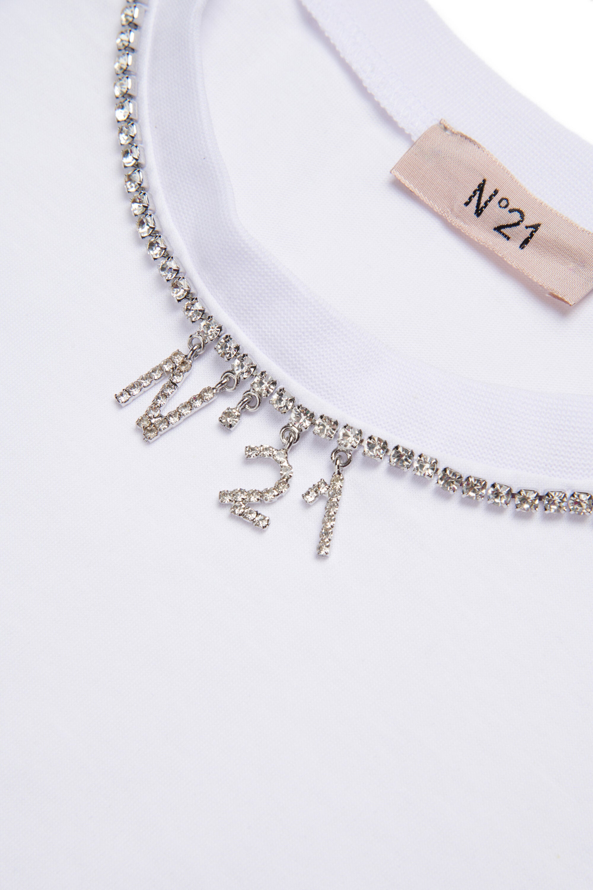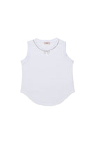 T-shirt in 100% cotton with applied logo and rhinestone detail at the neckline. Sleeveless style with a minimalist cut.